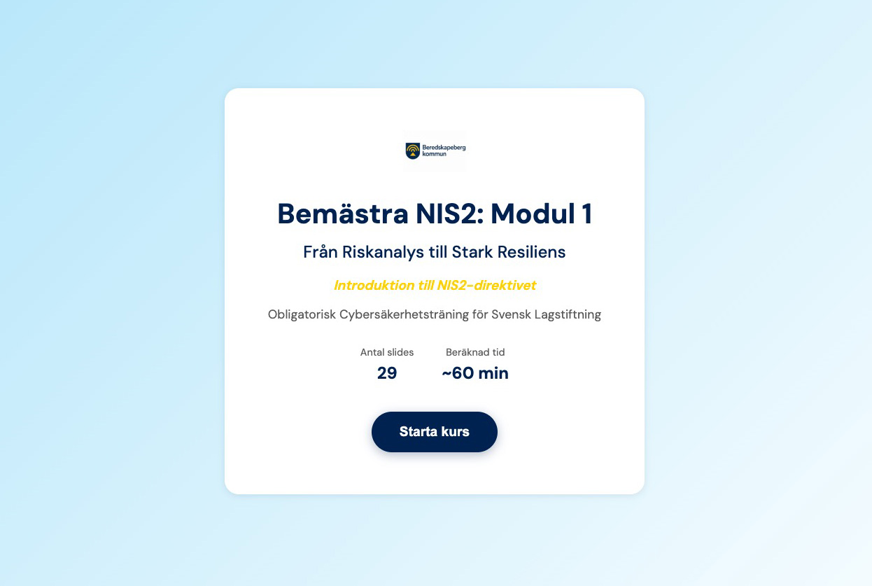 Modul 1 (15 min): Introduktion till NIS2:s bakgrund och krav.